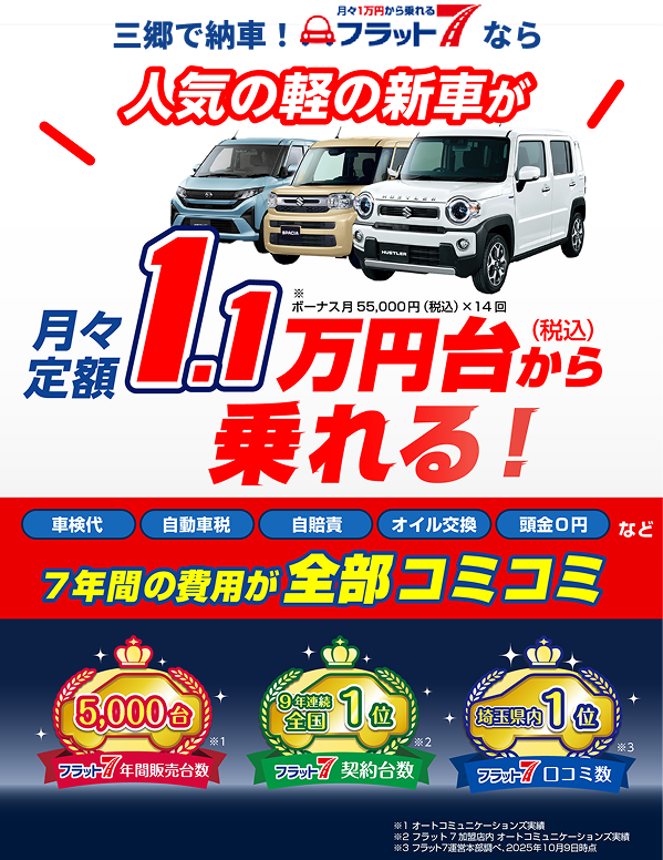 フラット7、ウルトラ車検、ニコニコレンタカー、アップガレージ他